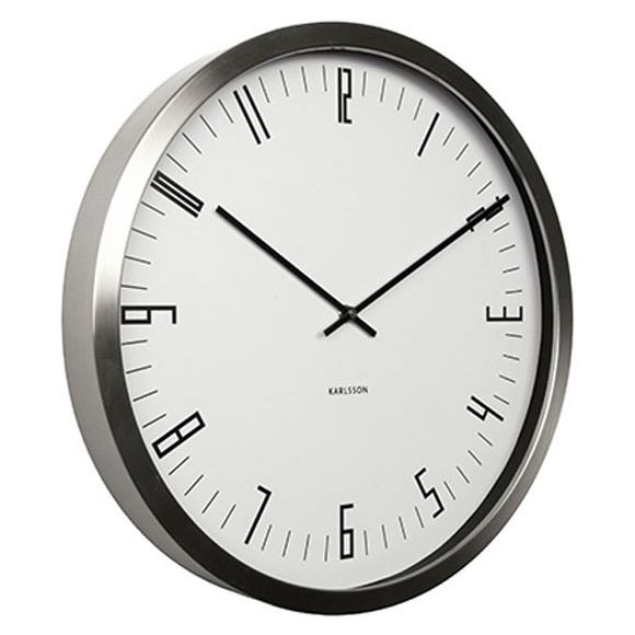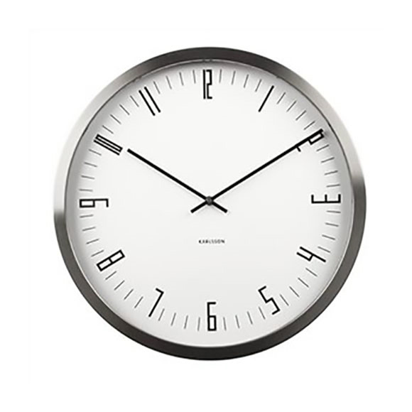 Contemporary and stylish wall clock by Box 32 design for Karlsson. Featuring a steel case with minimal white clock face and clear numbers.